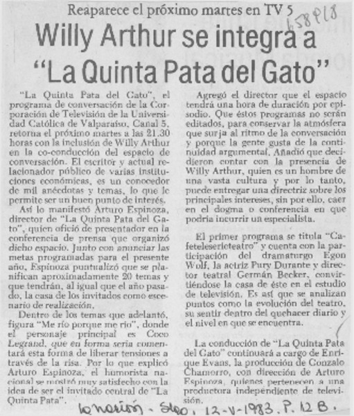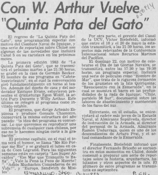 Con W. Arthur vuelve "Quinta pata del gato". [artículo]