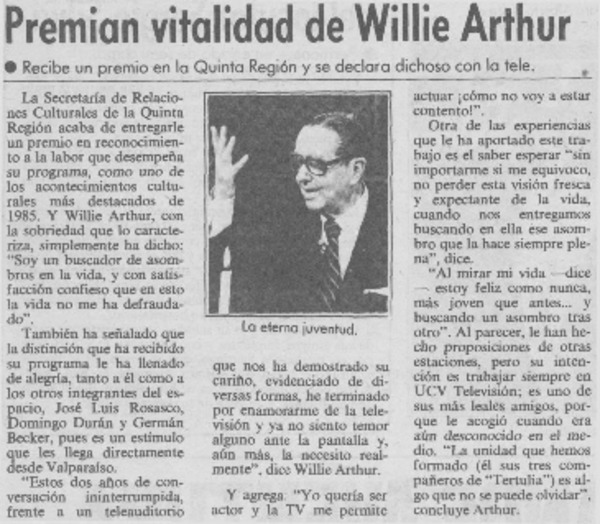 Willie Arthur. Un enamorado de la vida [entrevista]. [artículo] :