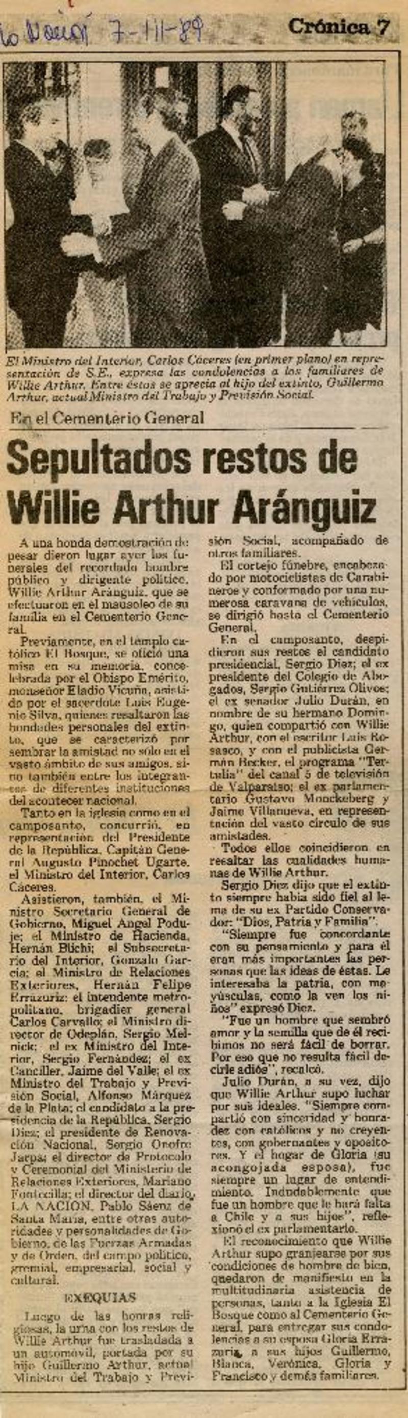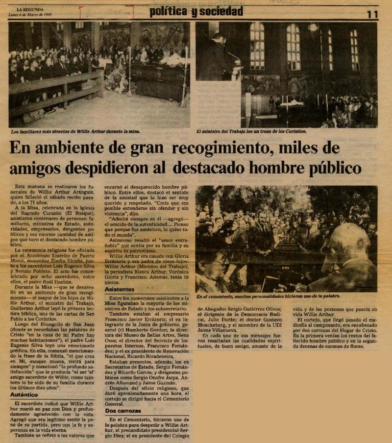 Sepultados restos de Willie Arthur Aránguiz [artículo].