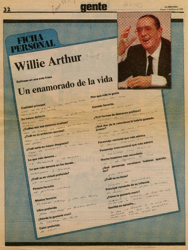 Ficha Personal Willie Arthur [entrevista]. [artículo] :