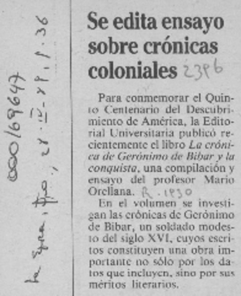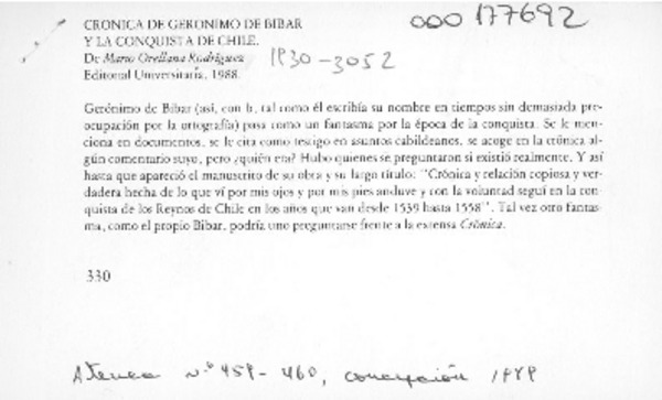 Crónica de Gerónimo de Bibar y la conquista de Chile [artículo] Hernán Poblete Varas.