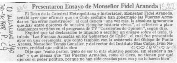 Presentaron ensayo de Monseñor Fidel Araneda [artículo].