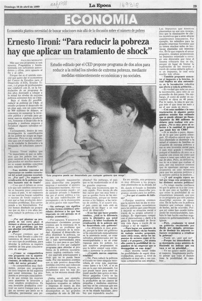 Ernesto Tironi, "Para reducir la pobreza hay que aplicar un tratamiento de shock" [artículo] Paulina Modiano.