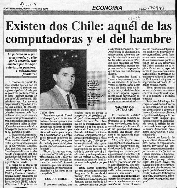 Existen dos Chile, aquél de las computadoras y el del hambre [artículo].