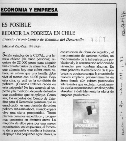 TIRONI, ERNESTO - ES POSIBLE REDUCIR LA POBREZA EN CHILE