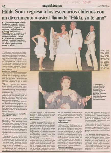 Hilda Sour regresa a los escenarios chilenos con un divertimento musical llamado "Hilda, yo te amo" [artículo].