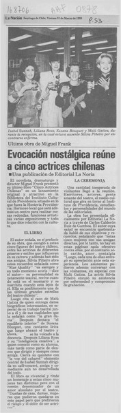 Evocación nostálgica reúne a cinco actrices chilenas [artículo].