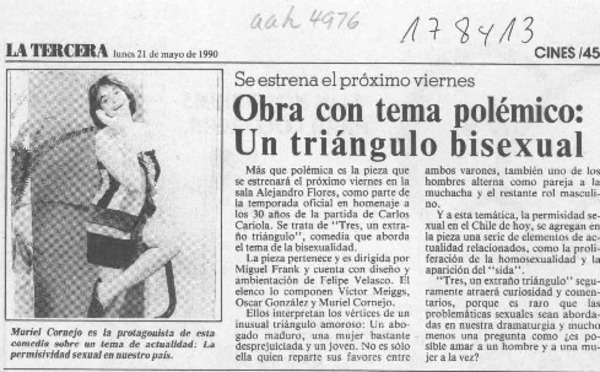 Obra con tema polémico, un triángulo bisexual [artículo].