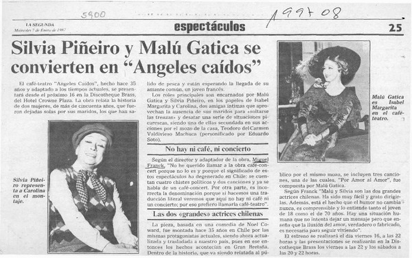 Silvia Piñeiro y Malú Gatica se convierten en "Angeles caídos" [artículo].