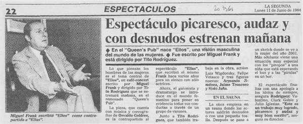 Espectáculo picaresco, audaz y con desnudos estrenan mañana [artículo].