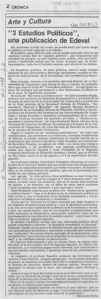 "3 estudios políticos", una publicación de Edeval [artículo] Bernardo Soria.