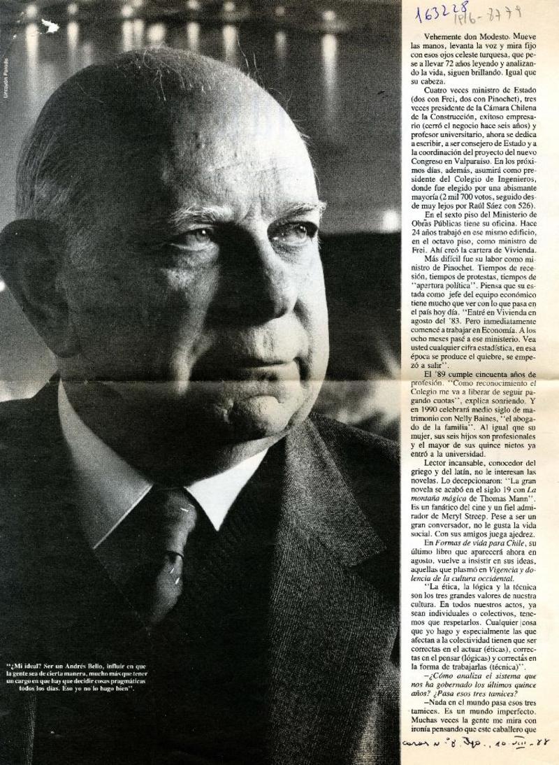 Modestamente -- don Modesto [entrevista] [artículo] : Ana María Larraín.