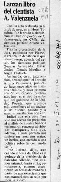 Lanzan libro del cientista A. Valenzuela [artículo].