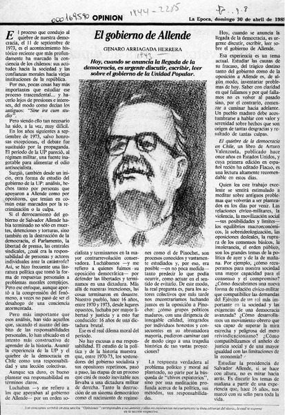 EL gobierno de Allende [artículo] Genaro Arriagada Herrera.