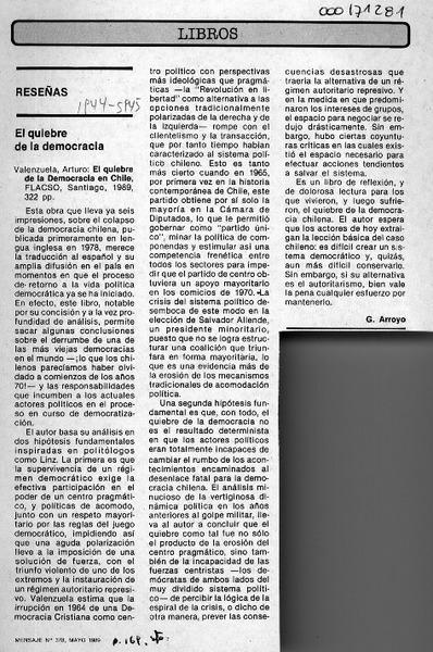 VALENZUELA, ARTURO - CHILE, PERSPECTIVAS PARA LA DEMOCRACIA
