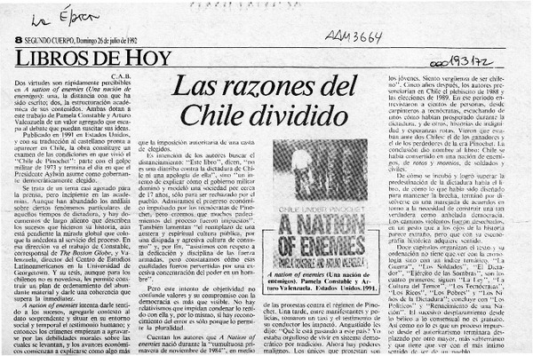 Autores chilenos - VALENZUELA, ARTURO - NACION DE ENEMIGOS
