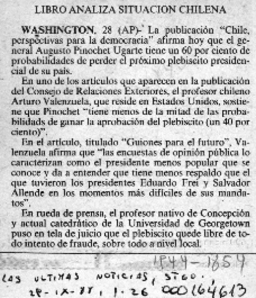 Polémico libro sobre Pinochet en los EE. UU. [artículo]