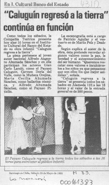 "Caluguín regresa a la tierra" continúa en función [artículo].