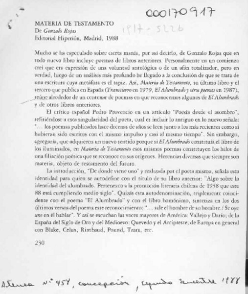 ROJAS, GONZALO - MATERIA DE TESTAMENTO