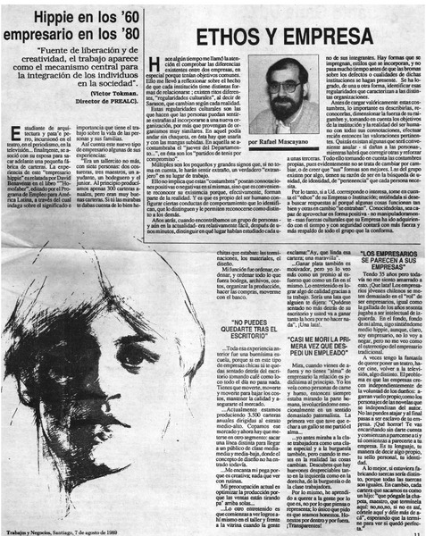 Hippie en los '60 empresario en los '80 [artículo] Víctor Tokman.