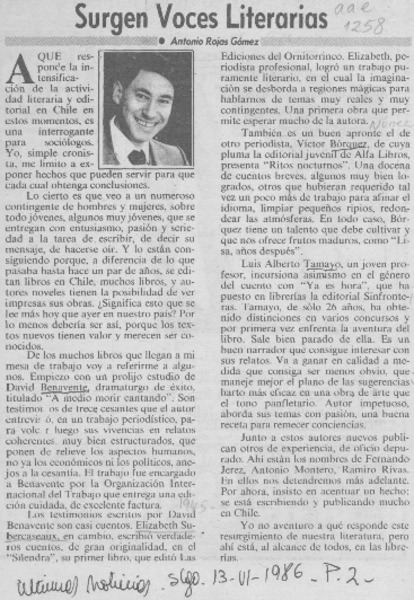 Surgen voces literarias [artículo] Antonio Rojas Gómez.