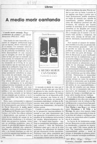 A medio morir cantando [artículo] Carlos Ruiz-Tagle.