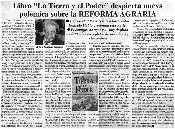 Libro "La tierra y el poder" despierta nueva polémica sobre la Reforma Agraria [artículo].