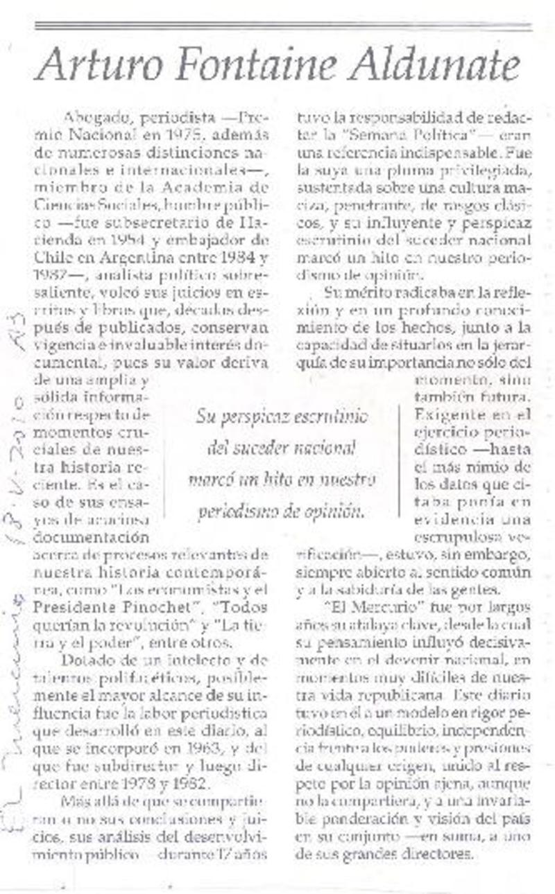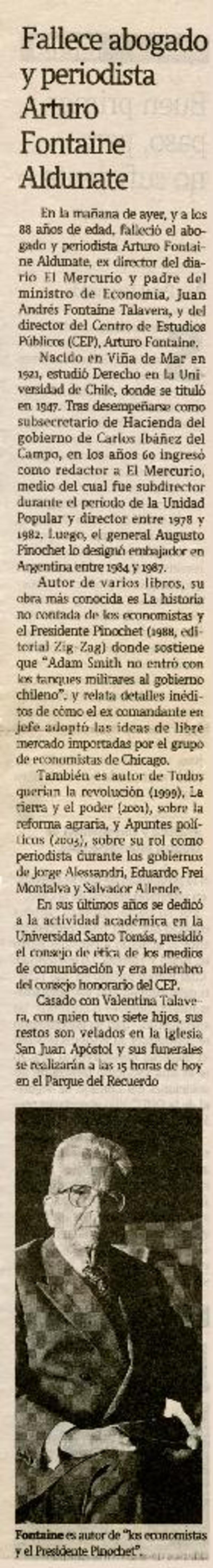 Fallece abogado y periodista Arturo Fontaine Aldunate [artículo].
