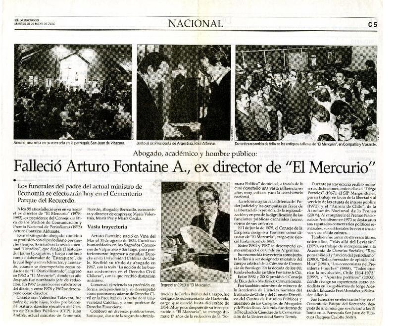 Falleció Arturo Fontaine A., ex director de "El Mercurio" [artículo].