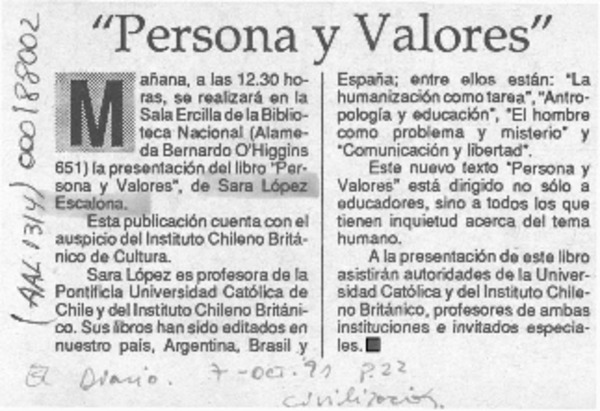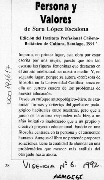 LOPEZ ESCALONA, SARA - PERSONA Y VALORES