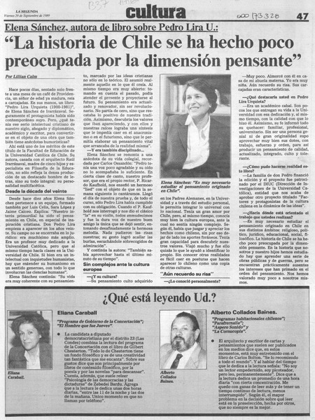 "La historia de Chile se ha hecho poco preocupada por la dimensión pensante" [artículo] Lillian Calm.