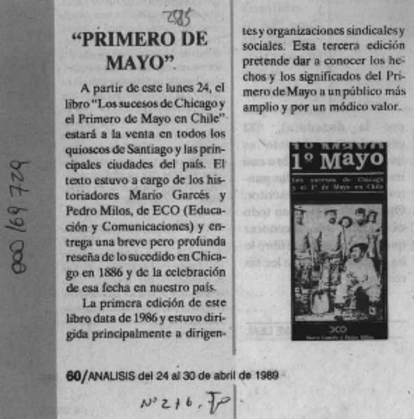 El Primero de Mayo [artículo].