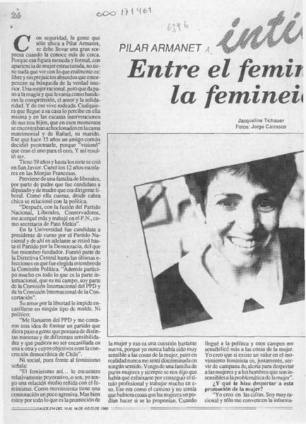 Entre el feminismo y la femineidad [artículo] Jacqueline Tichauer.