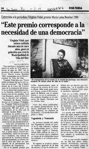 "Este premio corresponde a la necesidad de una democracia" [artículo] Maura Brescia.
