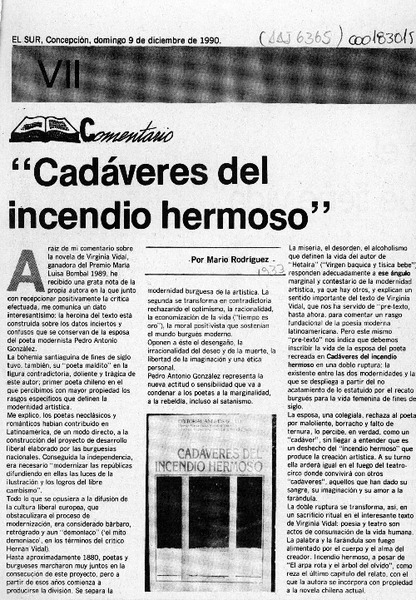 "Cadáveres del incendio hermoso" [artículo] Mario Rodríguez.