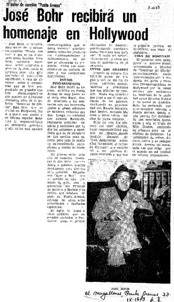 Homenaje a José Bohr en Punta Arenas. [artículo]