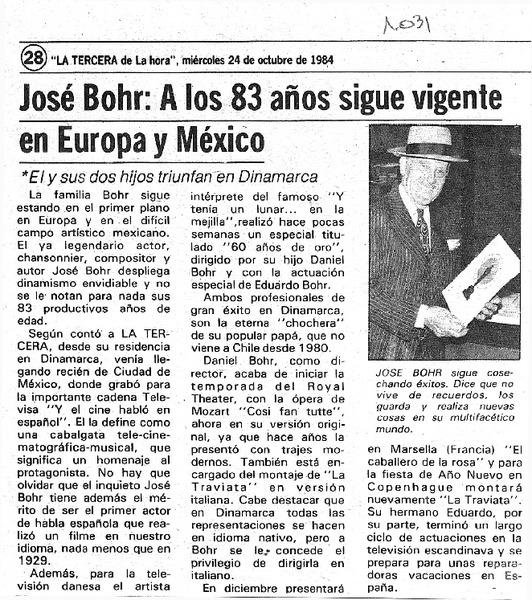 José Bohr, a los 83 años sigue vigente en Europa y México. [artículo]