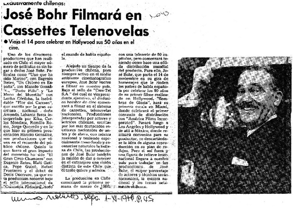 José Bohr filmará en cassettes telenovelas. [artículo]
