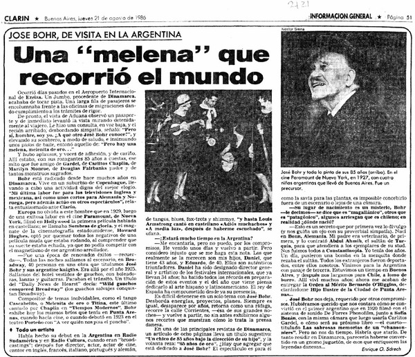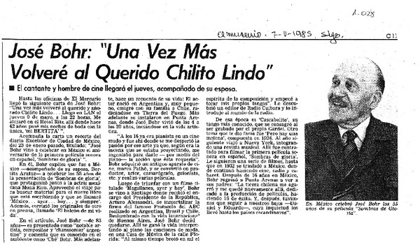 José Bohr, "una vez más volveré al querido chilito lindo". [artículo]