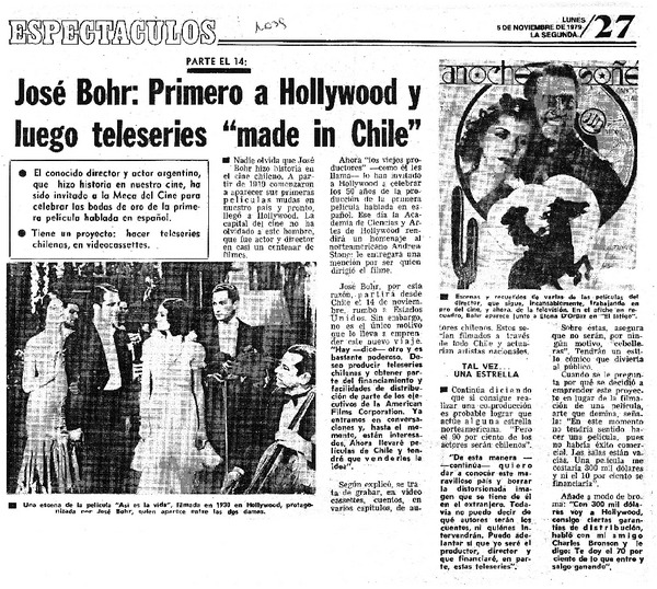 José Bohr, primer a Hollywood y luego teleseries "made in Chile". [artículo]