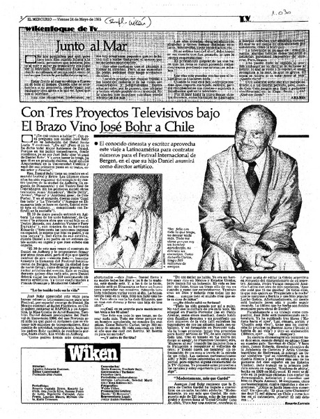 Con tres proyectos televisivos bajo el brazo vino José Bohr a Chile [artículo] Rosario Larraín.