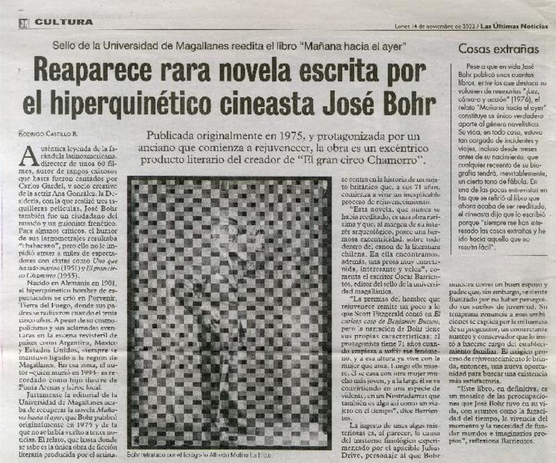 Reaparece rara novela escrita por el hiperquinético cineasta José Bohr [artículo] Rodrigo Castillo R.