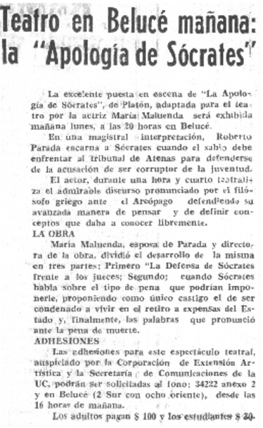 Autores chilenos - Autores griegos - Maluenda Campos, María - Parada, Roberto - Apología de Sócrates - Platón - Sócrates - Autoras chilenas