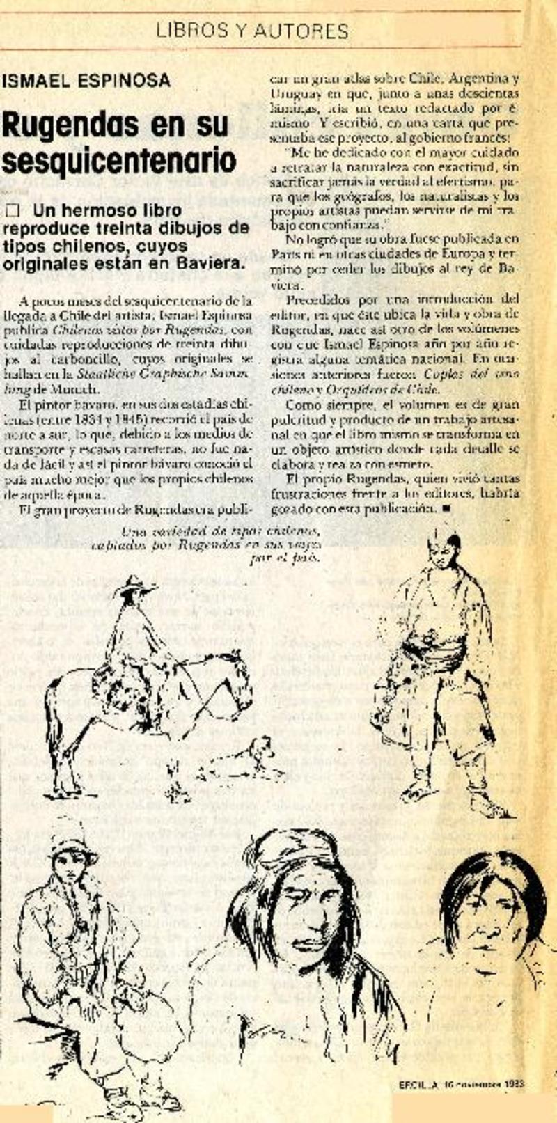 Autores chilenos - Espinosa V., Ismael - Rugendas, Mauricio - Chilenos vistos por Rugendas
