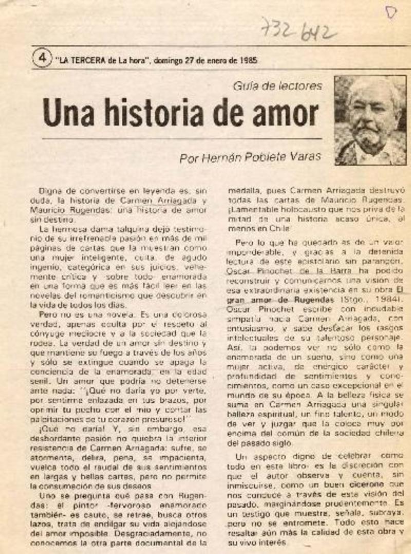 Una historia de amor [artículo] Por, Hernán Poblete Varas.