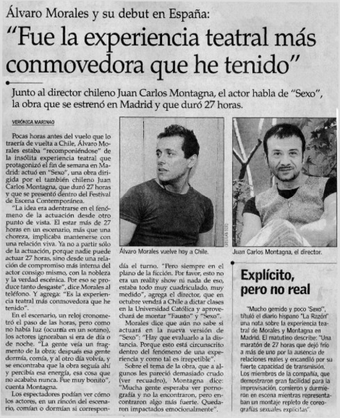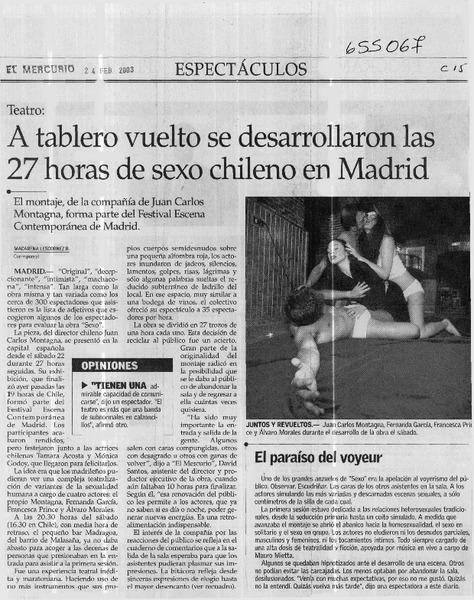 A tablero vuelto se desarrollaron las 27 horas de sexo chileno en Madrid [artículo] Macarena Lescornez R.