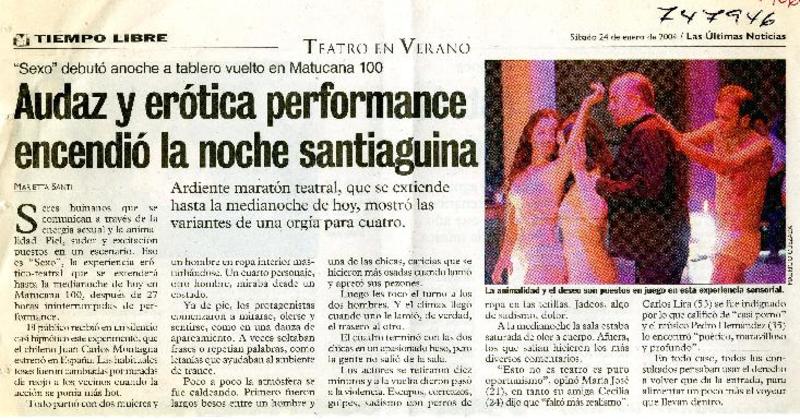 Audaz y erótica performance encendió la noche santiaguina [artículo] Marietta Santí.