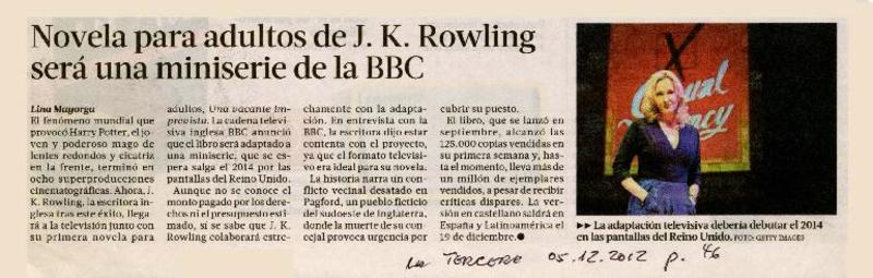 Novela para adultos de J. K. Rowling será una minioserie de la BBC [artículo]