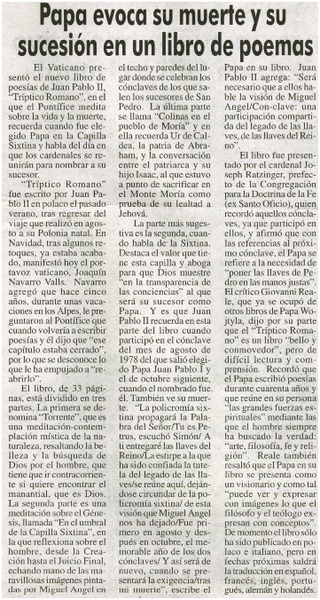 Papa evoca su muerte y su sucesión en un libro de poemas. [artículo]