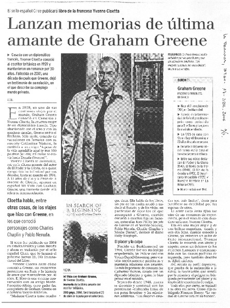 Lanzan memorias de última amante de Graham Grreene [artículo] A. G. B.